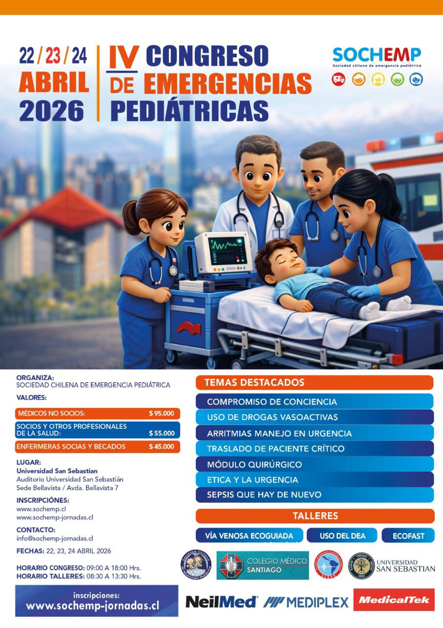SOCHINEP participa como sociedad patrocinadora de este congreso. En el marco de esta colaboración, la SOCHEMP ha puesto a disposición de nuestra Sociedad 2 inscripciones liberadas, destinadas exclusivamente a socios y socias de SOCHINEP que se encuentren al día en sus cuotas.